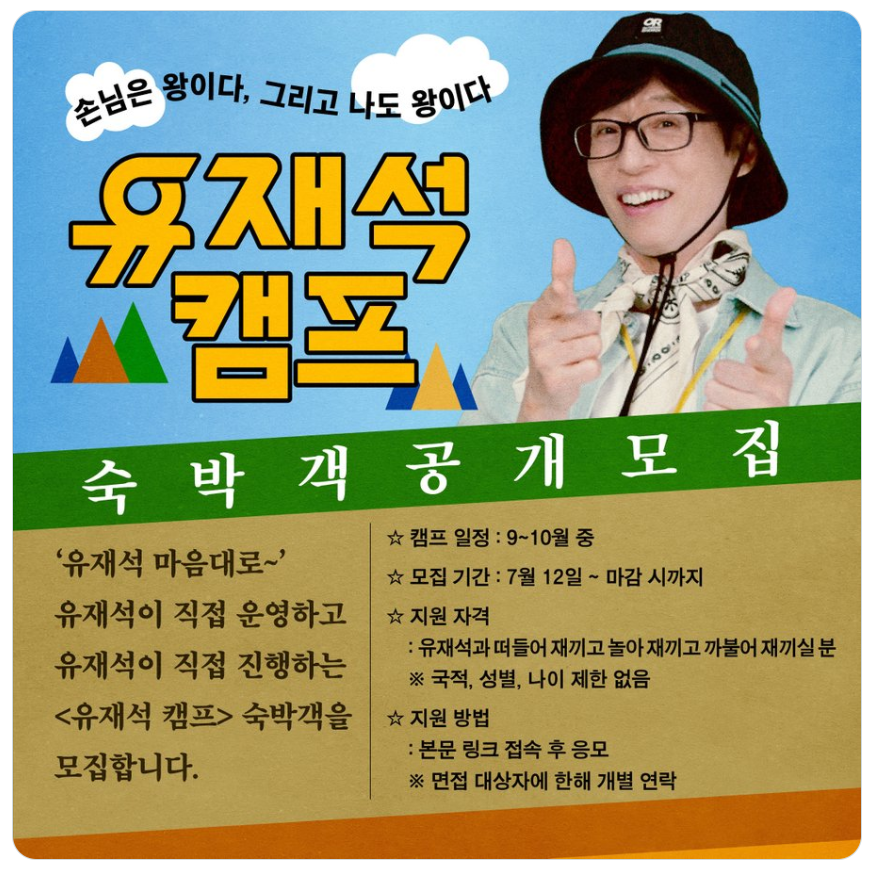 - 프로그램명: 유재석 캠프 (Yoo Jae Suk Camp)